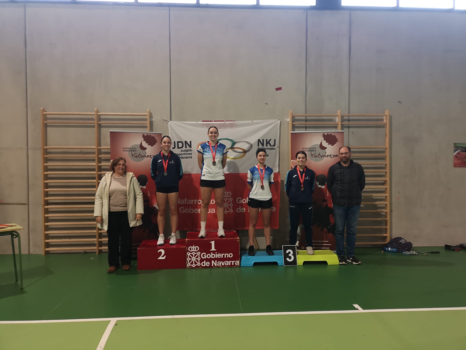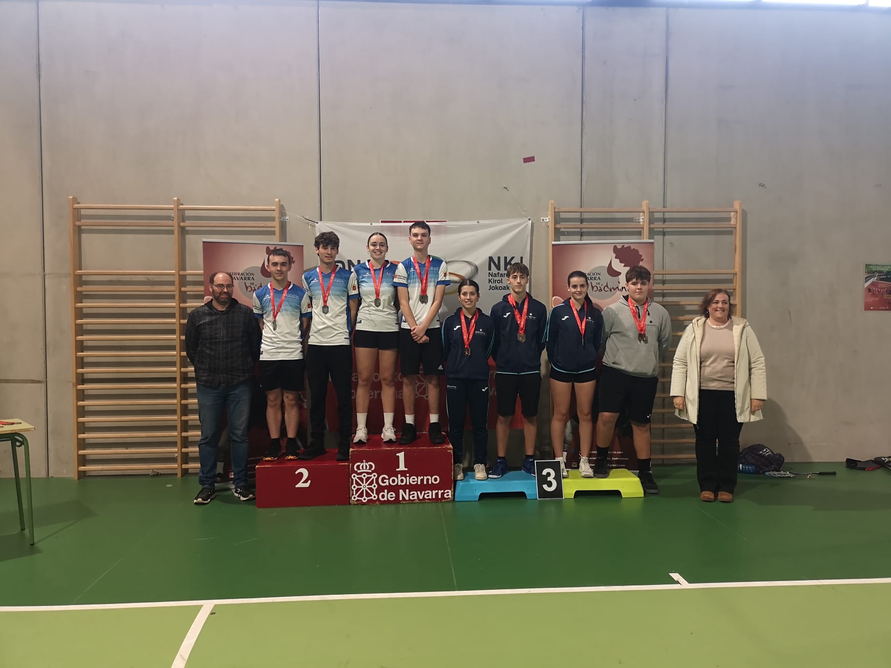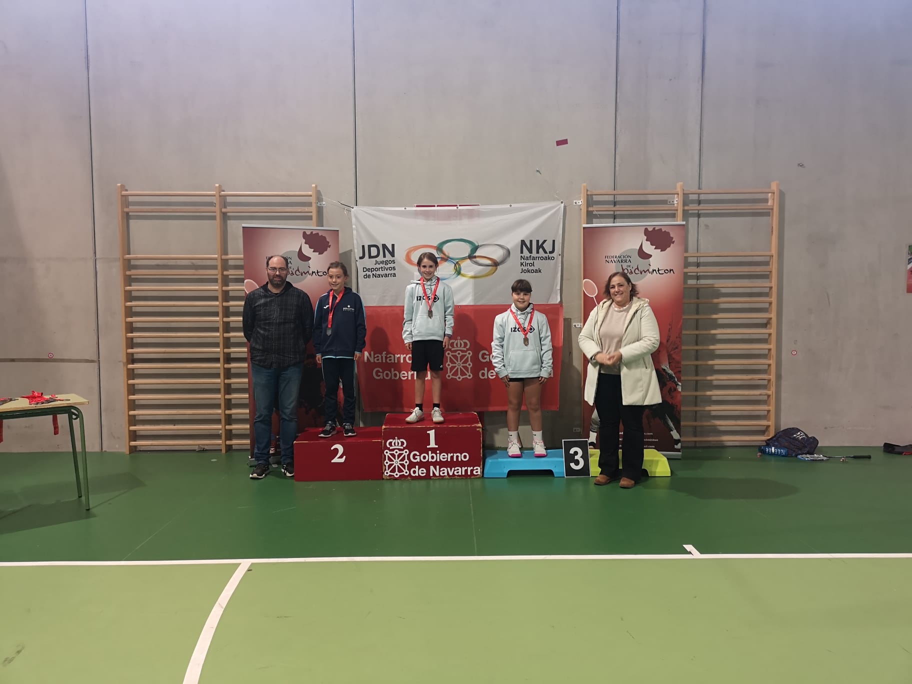 En la entrega de medallas estuvieron presentes Marta Ruiz de Alda, alcaldesa de Estella; y Sergio Juániz, presidente de la Federación Navarra de Bádminton.