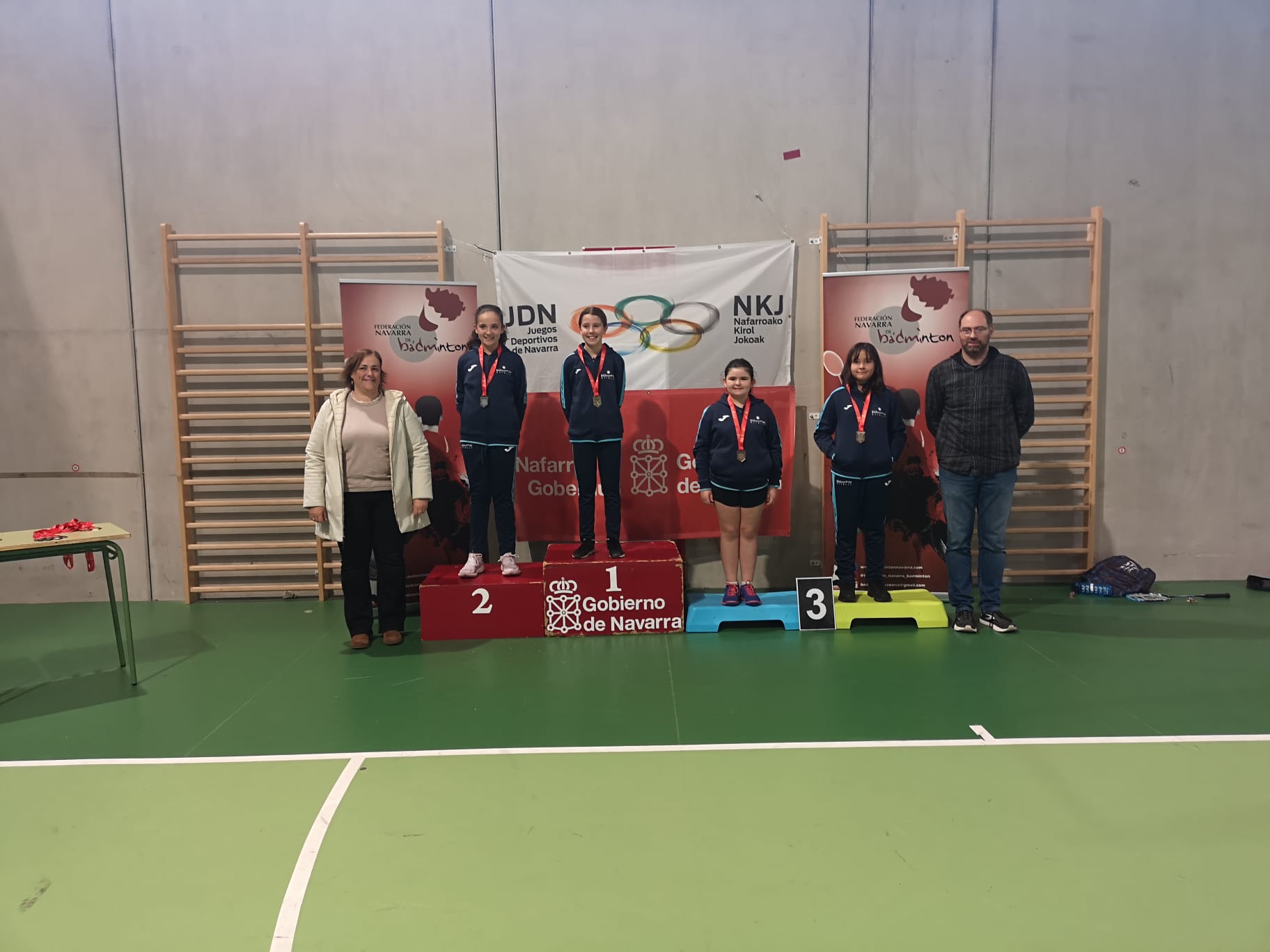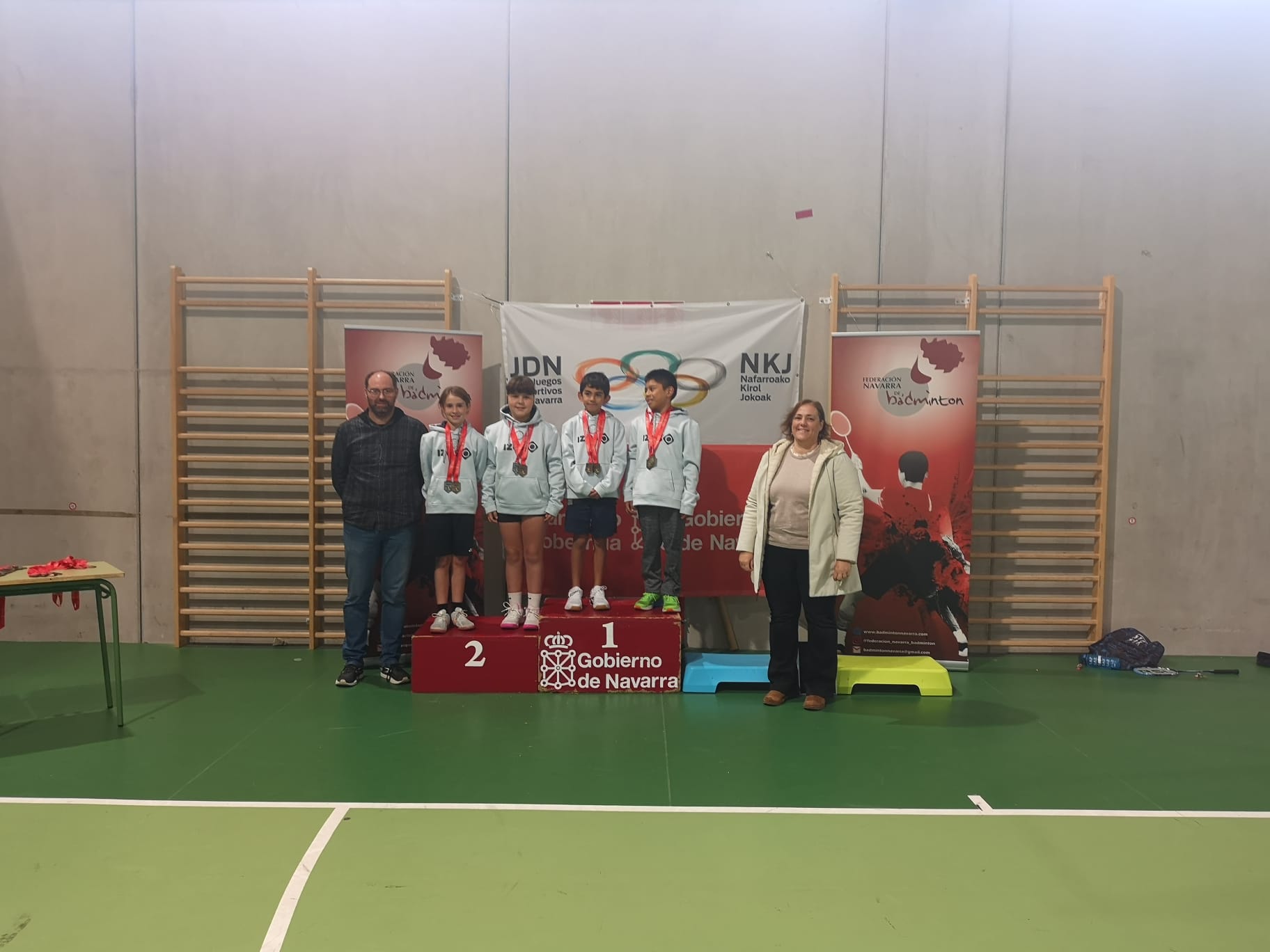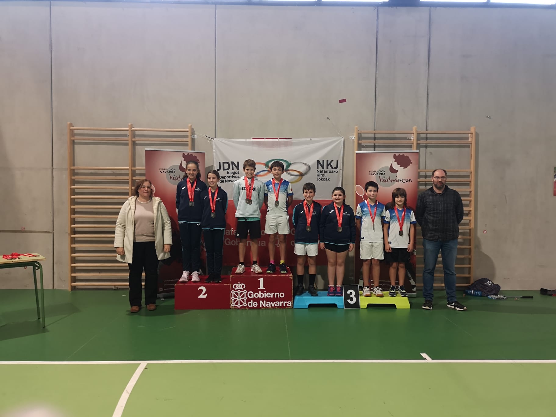 En la entrega de medallas estuvieron presentes Marta Ruiz de Alda, alcaldesa de Estella; y Sergio Juániz, presidente de la Federación Navarra de Bádminton.